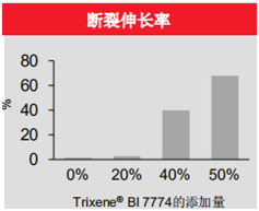從上述實驗中可以看出Trixene®BI7774環(huán)氧增韌劑可明顯增加環(huán)氧體系的斷裂伸長率和沖擊強度,但當添加量過大時也對環(huán)氧體系硬度影響較大??偠灾?,合適比例的Trixene®BI7774環(huán)氧增韌劑的添加可明顯改善體系韌性,同時也對硬度影響較小。