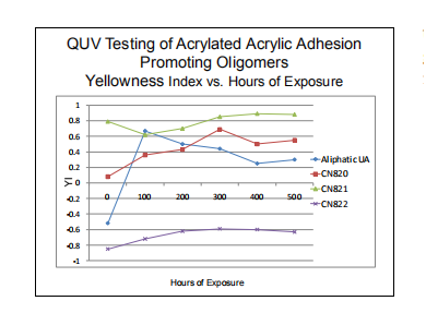 與環(huán)氧丙烯酸酯相比,PEAs本身具有更好的抗黃變性能。