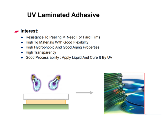 2) UV光學(xué)膠, 如LOCA/OCA, BEF,QDF等,隨著MINI-LED,OLED技術(shù)的成熟,柔性顯示屏用的UV膠是開發(fā)熱點(diǎn)