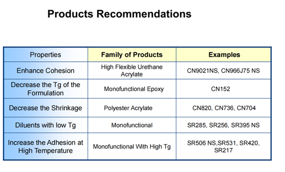 結(jié)束語(yǔ):以上是筆者結(jié)合實(shí)際應(yīng)用整理的,得益于Sartomer提供的產(chǎn)品和技術(shù)平臺(tái),我們有幸深入到一些UV膠粘劑的應(yīng)用,UV的魅力是設(shè)計(jì)的豐富多彩,原材料的種類豐富,而且有不斷的創(chuàng)新產(chǎn)品。不妥之處,敬請(qǐng)指正。